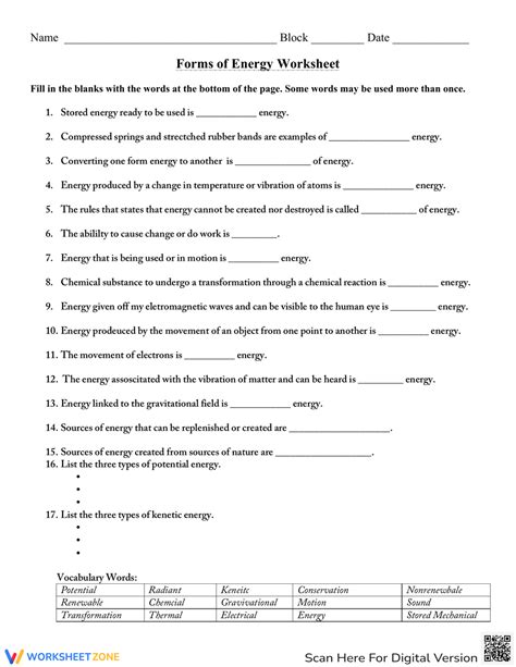 This worksheet contains basic conceptual questions about the forms of energy. Web a worksheet about the different forms of energy. Web docx, 248.29 kb.